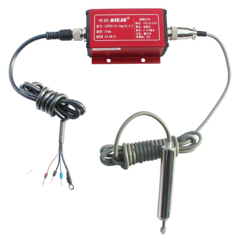 差動變壓器式位移傳感器(LVDT)具有精度高,動態特性好,工作可靠,使用方便等特點。適用于質量控制和計量應用中的高精度,高重復性的測量。可廣泛應用于航天航空、機械、建筑、紡織、鐵路、煤炭、冶金、塑料、化工以及科研院校等國民經濟各行各業,用來測量伸長,振動,物體厚度,膨脹等的高技術產品。