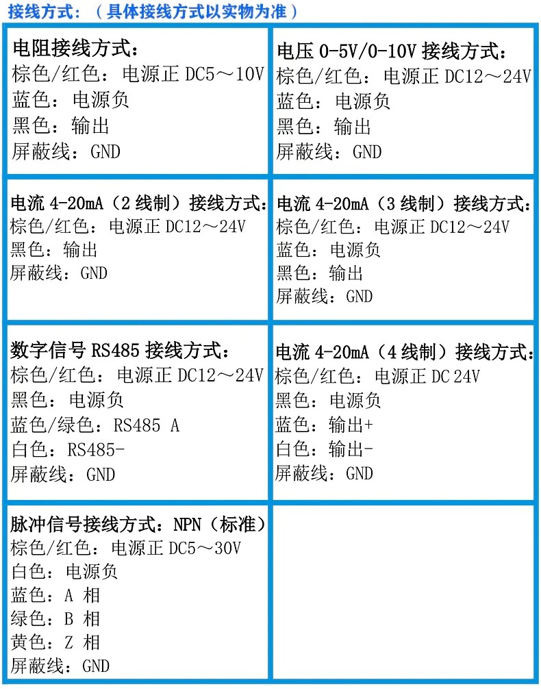 電流輸出型:4-20MA (二線制,三線制,四線制),