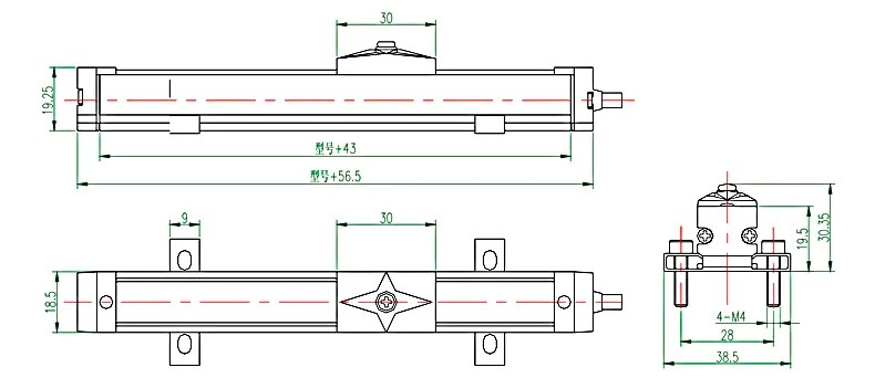 KFM微型滑塊式電阻尺技術參數及安裝尺寸: