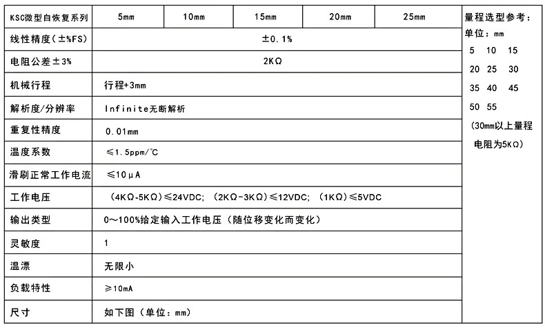KSC智能閥門專用直線位置傳感器參數(shù):
