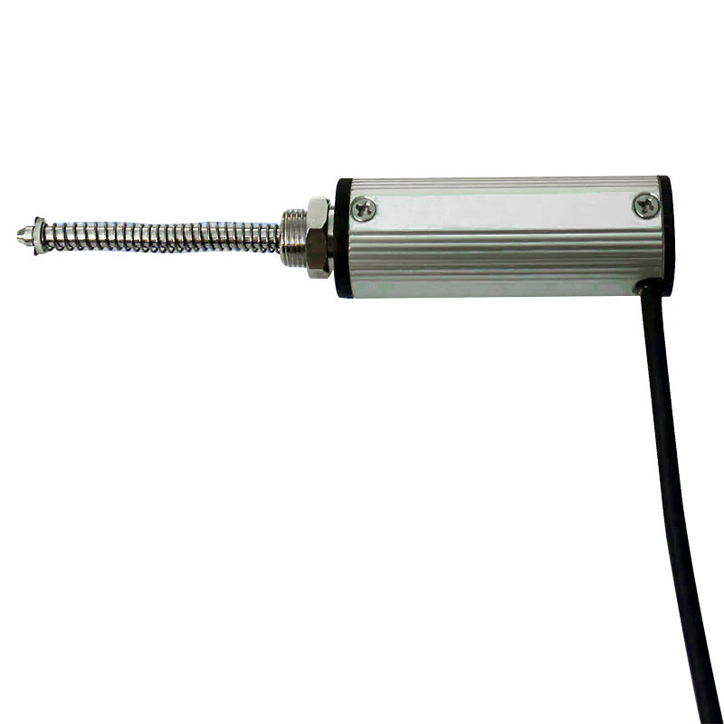 KSP圓管微型自復位式位移傳感器(別名:電子尺,電阻尺,電位器,位移傳感器)原理:電位計原理,所有傳感器為位置測量型,用于調節系統(控制系統)和測量系統中,對位移和長度進行直接測量,輸出直流電壓信號,也可以通過內置或者外置的V/A變送模塊將信號轉換成標準的0-5V、0-10V或者4-20mA直流信號,也可以遠距離傳輸控制要求。KSP圓管微型自復位式位移傳感器(別名:電子尺,電阻尺,電位器,位移傳感器)輸出位移變化:0-100%給定輸入工作電壓(隨位移變化而變化)。