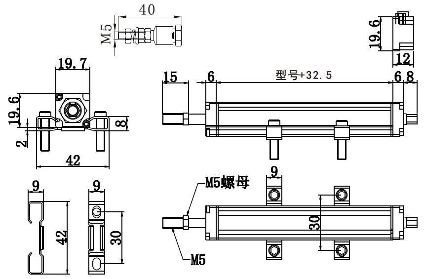 | 外殼長度(A) | 量程+56mm | |||||