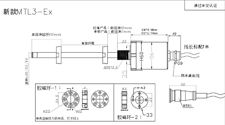 MTL3本安型磁致伸縮位移傳感器安裝尺寸圖及選型指南: