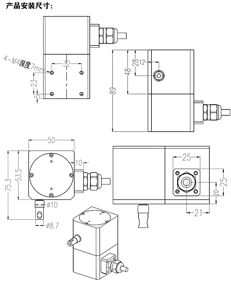 1,利用底部4個(gè)固定螺絲孔,依現(xiàn)場(chǎng)及機(jī)器安裝空間設(shè)施需要,直接安裝或另加保護(hù)或其他機(jī)械使用。