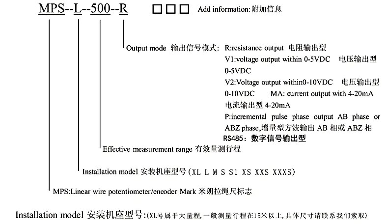 MPS-XS磁吸安裝式拉繩位移傳感器選型指導(dǎo):