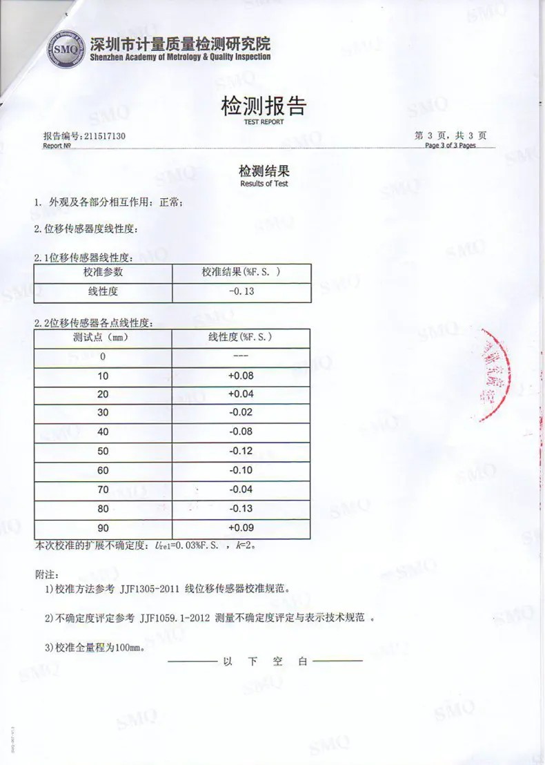 七、振弦式位移傳感器(裂縫計)檢測報告: