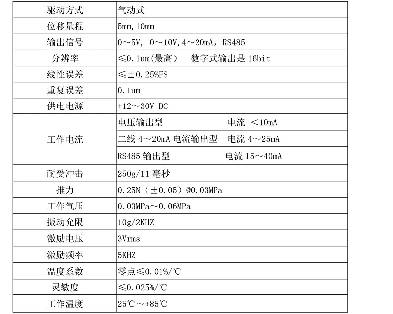 LVDT8Q氣動式位移傳感器技術參數(shù):
