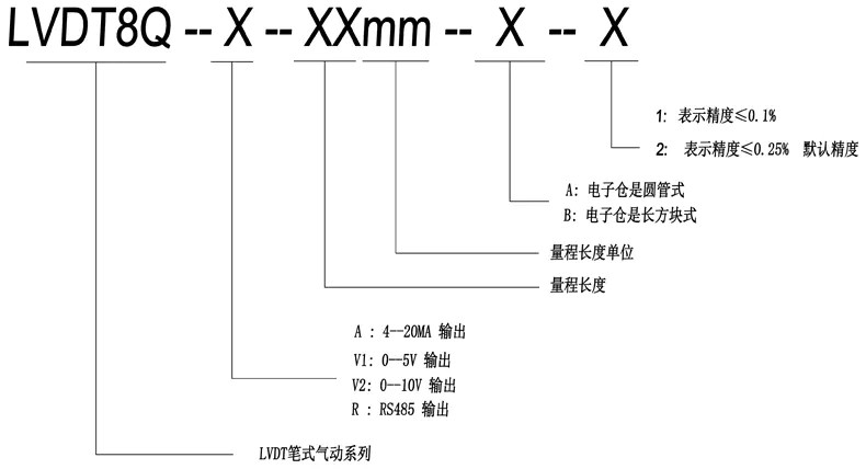LVDT8Q氣動式位移傳感器選型: