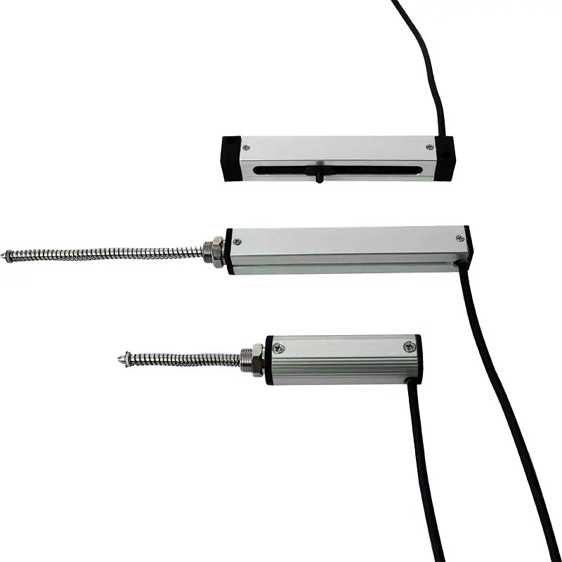 KSC方管微型自復位式位移傳感器(別名:電子尺,電阻尺,電位器,位移傳感器)原理:電位計原理,所有傳感器為位置測量型,用于調節系統(控制系統)和測量系統中,對位移和長度進行直接測量,輸出直流電壓信號,也可以通過內置或者外置的V/A變送模塊講信號轉換成標準的0-5V、0-10V或者4-20mA直流信號,也可以遠距離傳輸控制要求。KSC方管微型自復位式位移傳感器(別名:電子尺,電阻尺,電位器,位移傳感器)輸出位移變化:0-100%給定輸入工作電壓(隨位移變化而變化)。