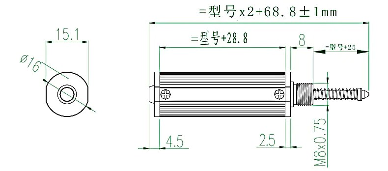 KSP智能閥門專用直線位置傳感器安裝尺寸: