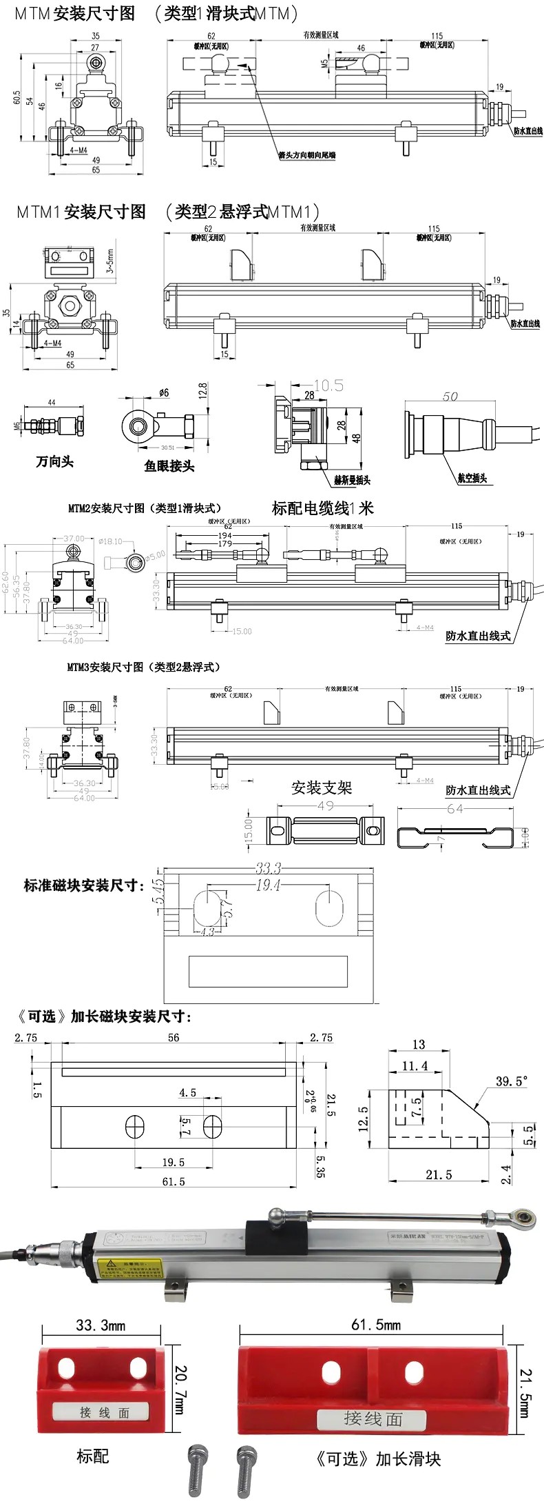 MTM低功耗導(dǎo)軌滑塊式磁致伸縮位移傳感器安裝尺寸: