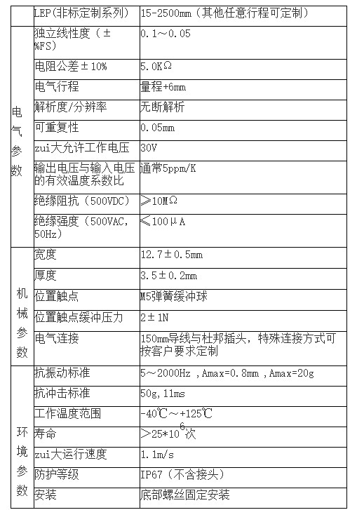 LEP無電刷防水防塵位移傳感器(行程可任意定制)特點: