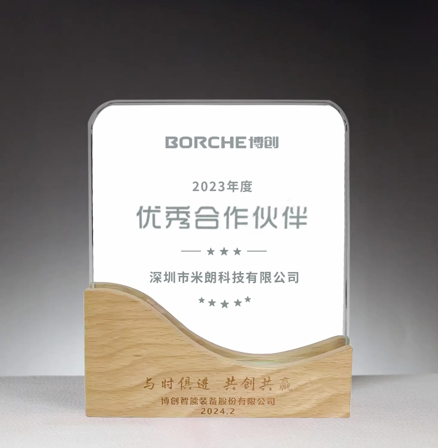 2024年2月29日米朗公司受邀參加博創智能裝備股份有限公司2024合作伙伴致謝會。并榮獲博創公司年度優秀合作伙伴獎牌。獎牌既是鼓勵,又是一份責任,米朗公司將一如既往為廣大各行各業的客戶提供優質的產品和服務。