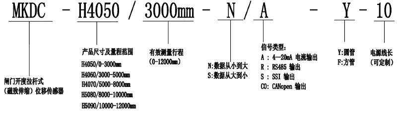 五、閘門開度外置拉桿式(磁致伸縮)位移傳感器選型: