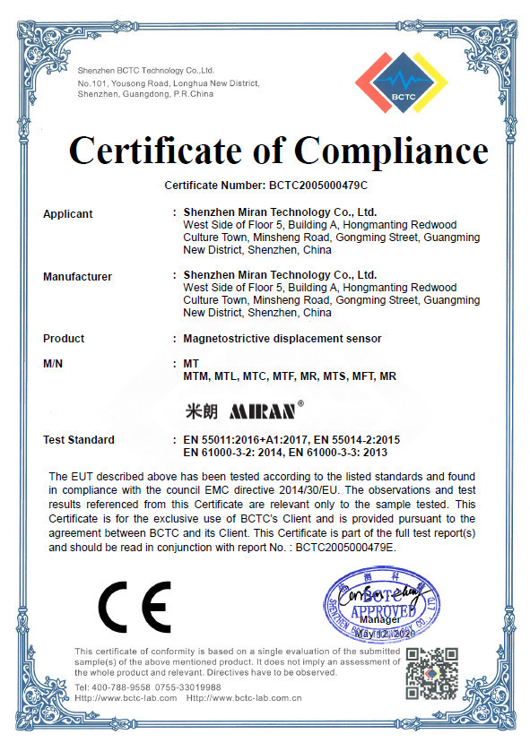 您的位置:主頁  > 榮譽(yù)資質(zhì)  > 磁致尺CE認(rèn)證