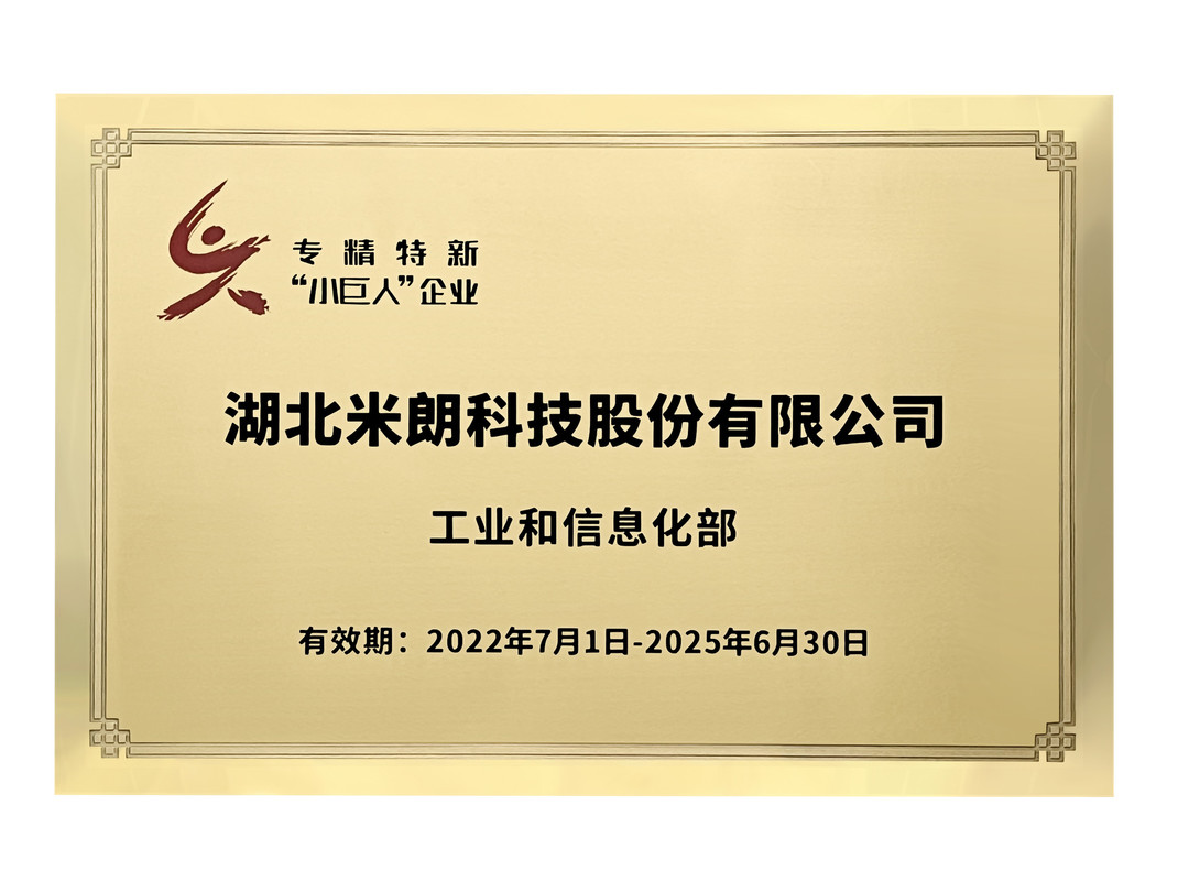 湖北米朗科技 專精特新小巨人企業 證書(1)