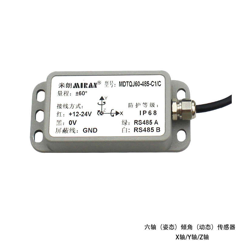 六軸(姿態(tài))傾角(動(dòng)態(tài))傳感器內(nèi)部使用數(shù)字型MEMS動(dòng)態(tài)芯片,可測(cè)量運(yùn)動(dòng)載體的姿態(tài)參數(shù)(橫滾、俯仰以及方位角),適用于運(yùn)動(dòng)或振動(dòng)狀態(tài)下的傾角測(cè)量。產(chǎn)品內(nèi)置加速度和陀螺傳感器,集成了卡爾漫濾波算法,從而可測(cè)量運(yùn)動(dòng)或振動(dòng)狀態(tài)下的載體實(shí)時(shí)運(yùn)動(dòng)數(shù)據(jù)。產(chǎn)品RS485/232/TTL等信號(hào)輸出模式可選,擴(kuò)展性強(qiáng)。