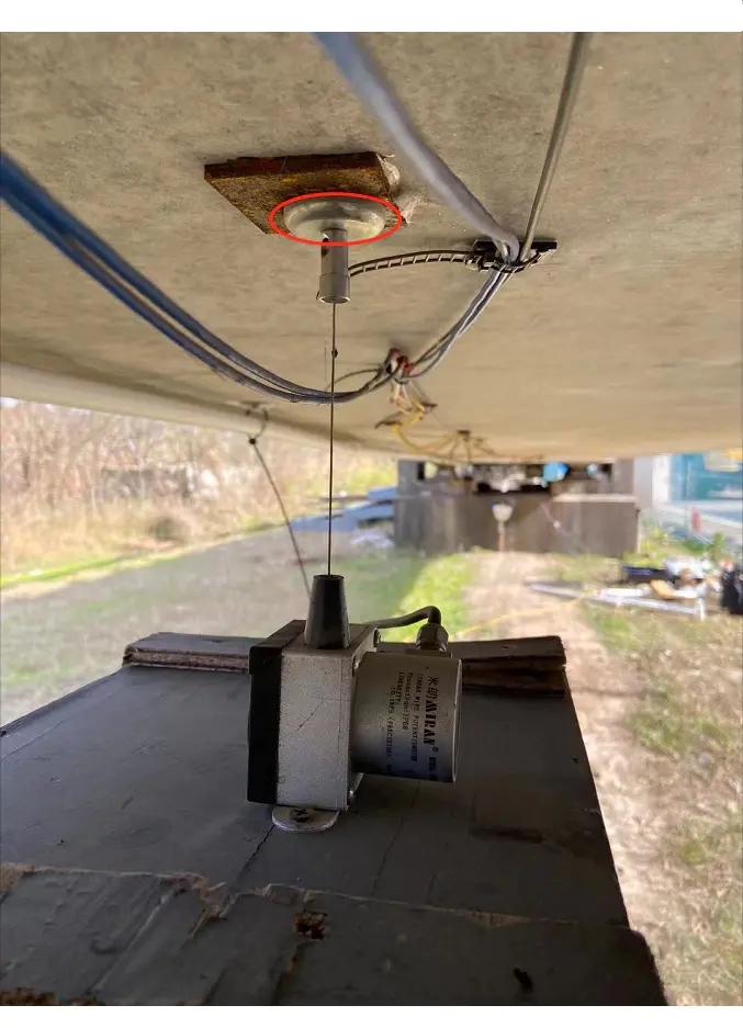 米朗磁吸式拉繩線式位移傳感器應用舉例之在橋梁下的使用